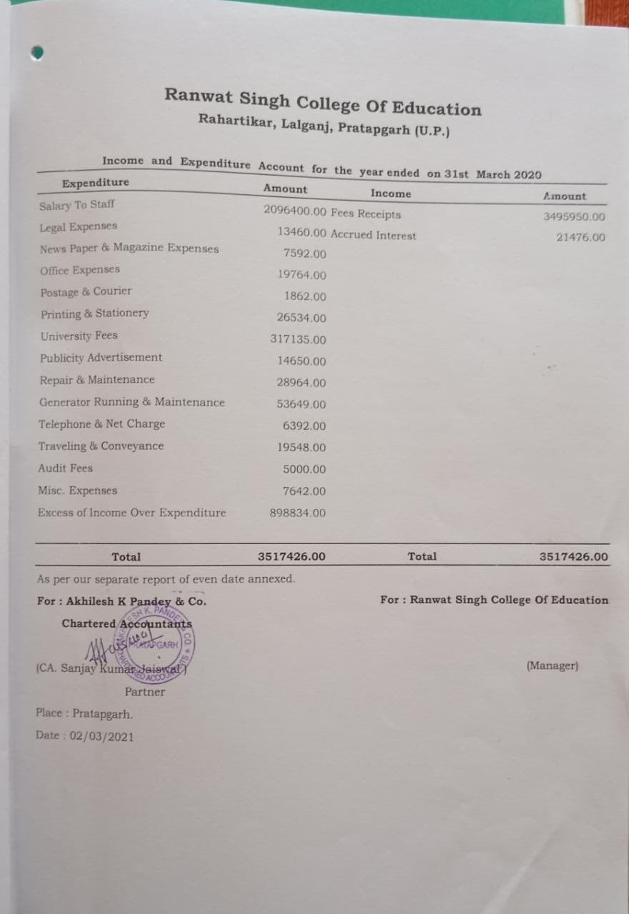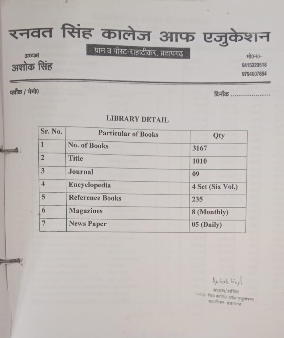 Ranwat Singh College of Education, Rahateekar, Pratapgarh